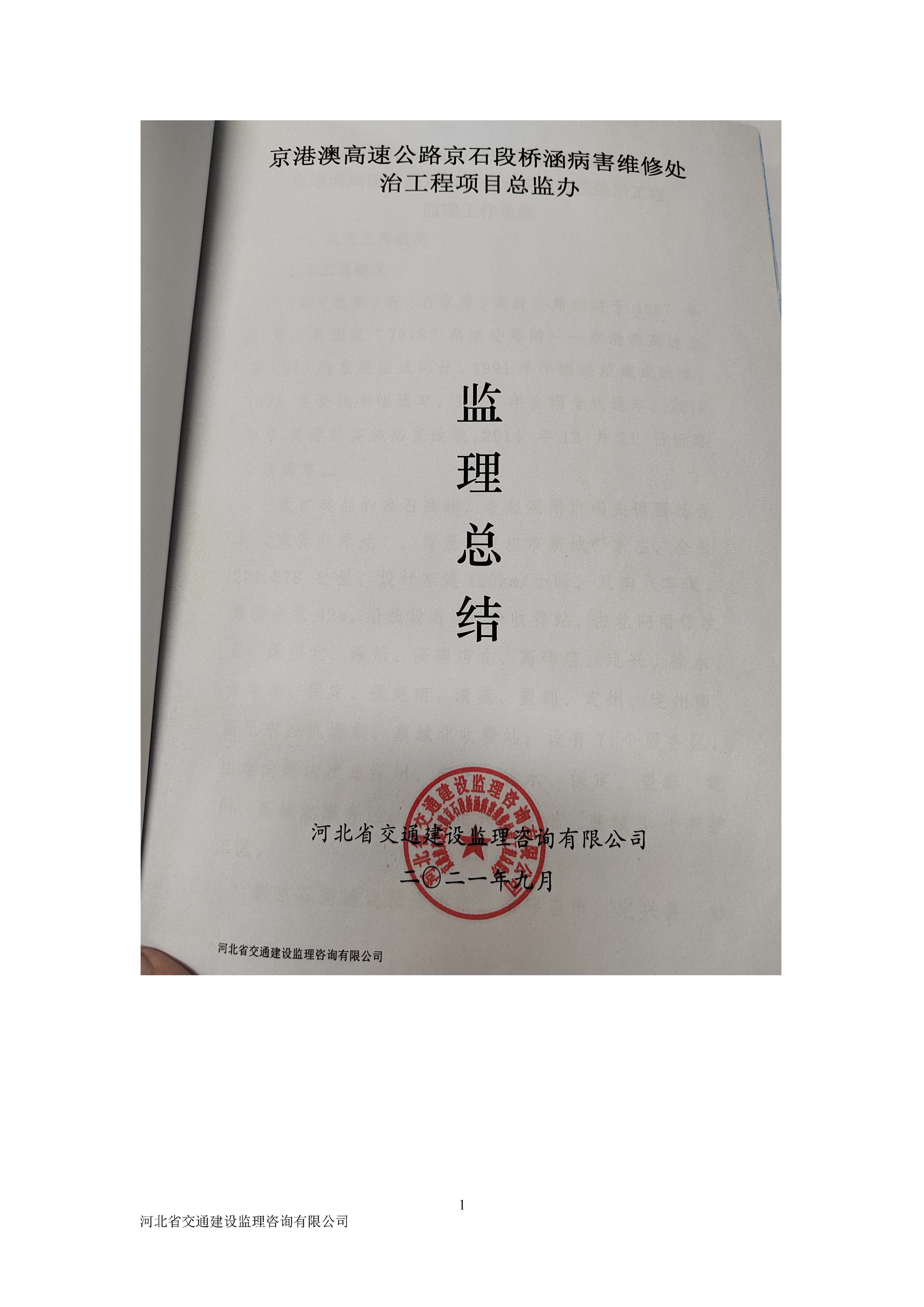 橋涵病害維修處治工程監(jiān)理報(bào)告