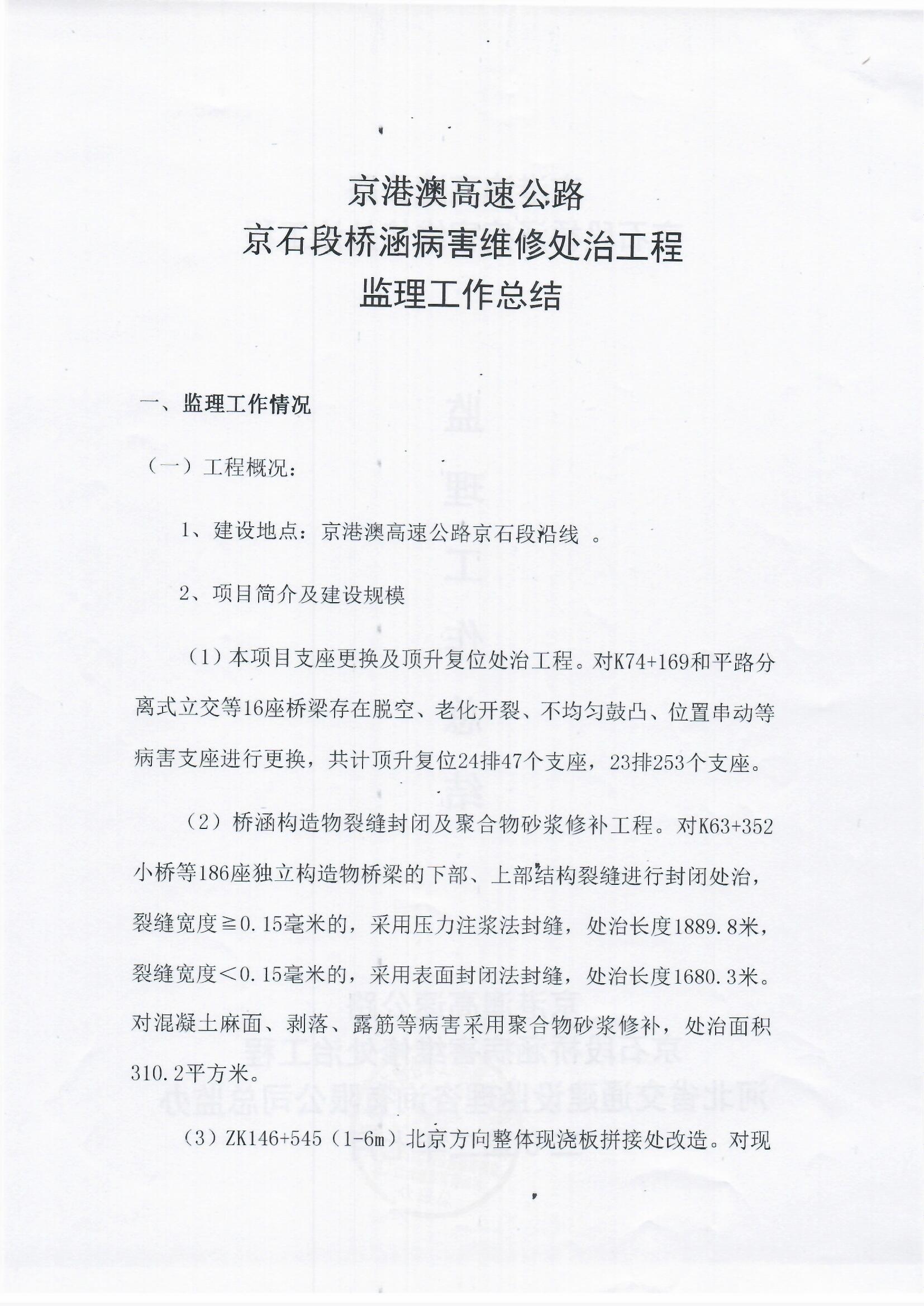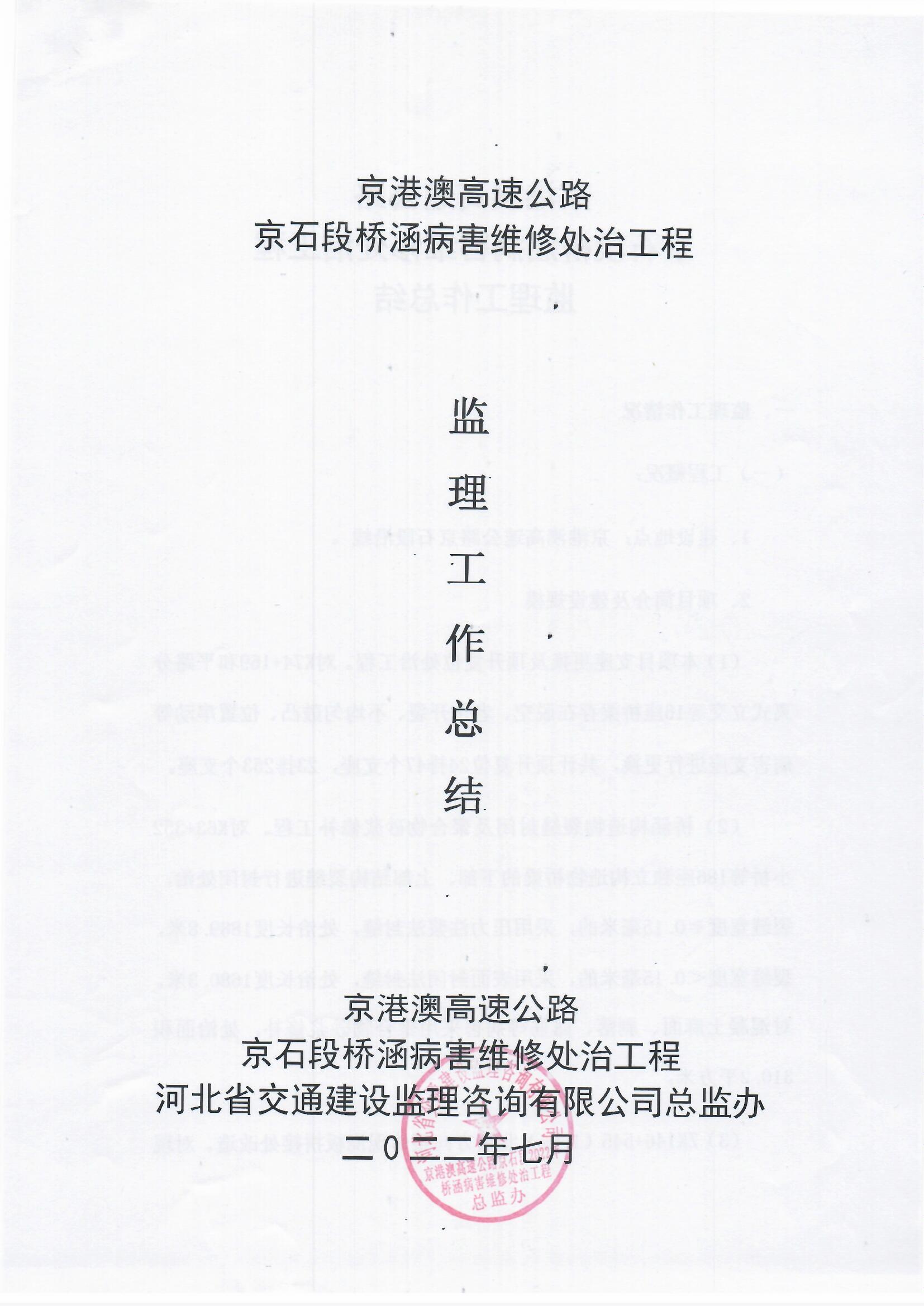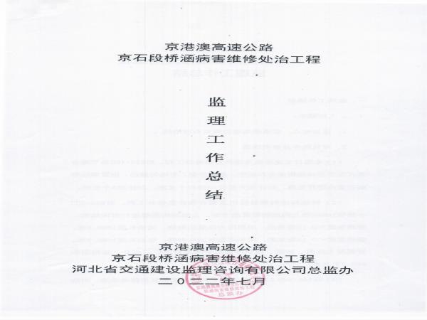 京港澳高速公路京石段2022年橋涵病害維修處治工程監(jiān)理報(bào)告