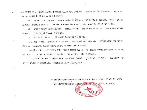 京港澳高速京石段沙河特大橋防護(hù)應(yīng)急工程監(jiān)理報(bào)告