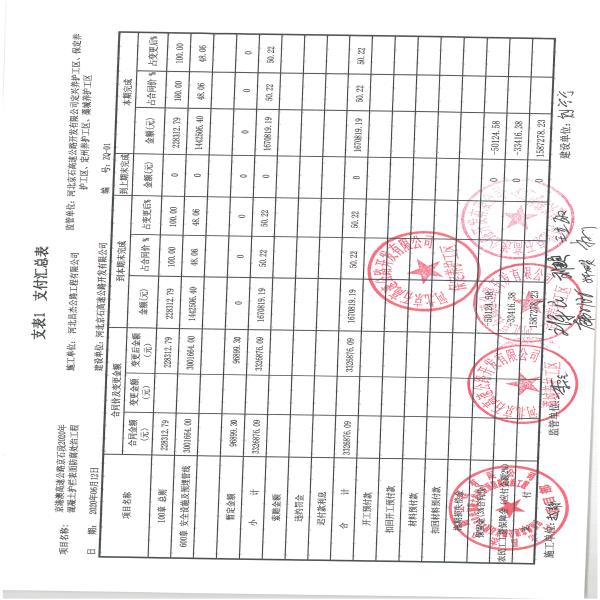 京港澳高速公路京石段2020年混凝土護欄表面防腐處治工程支付證書