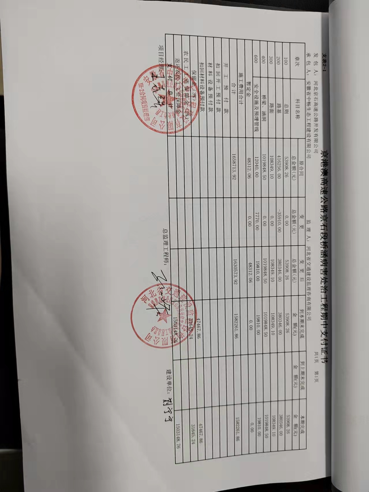 京港澳高速公路京石段橋涵病害維修處治工程YH-2標段支付證書