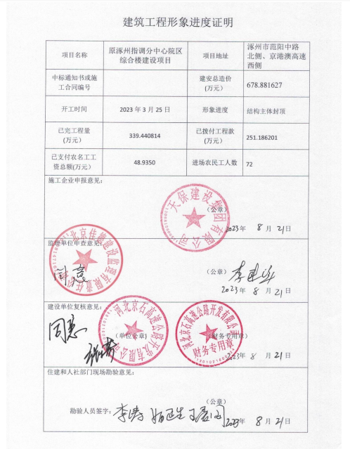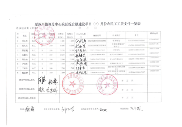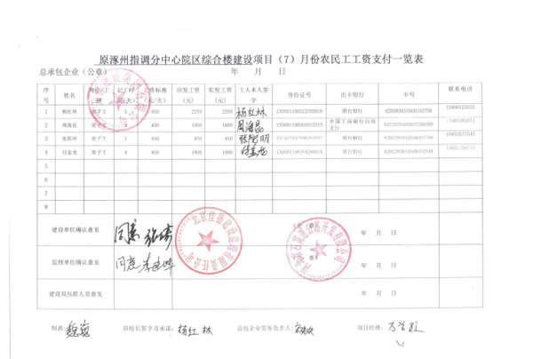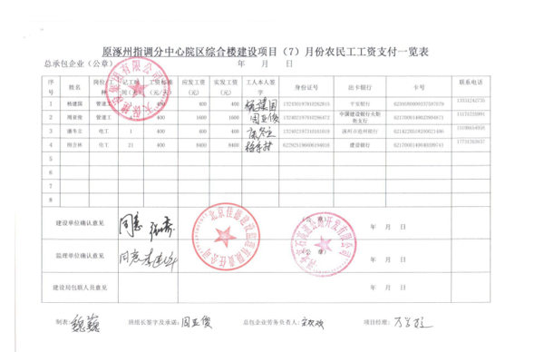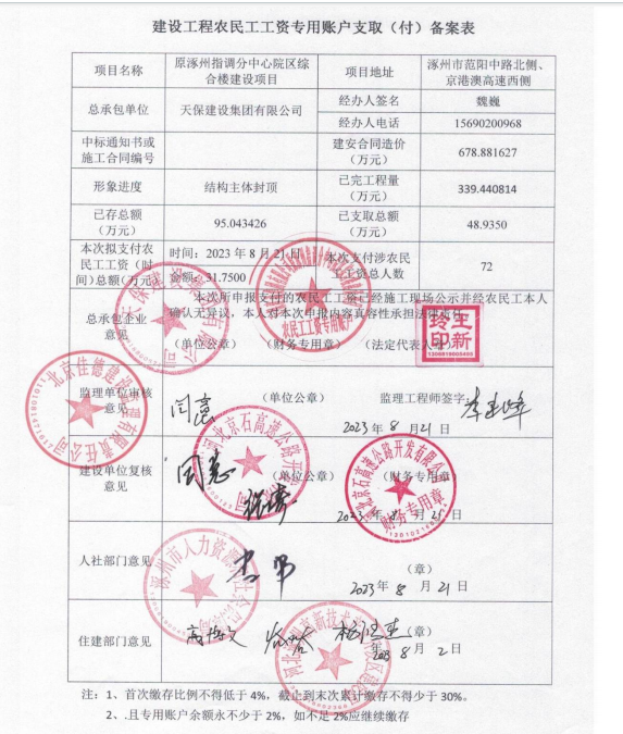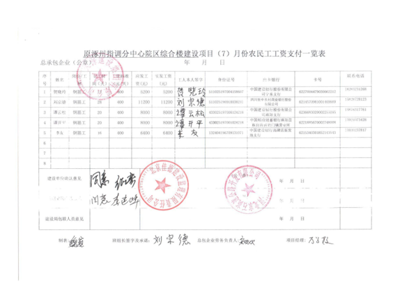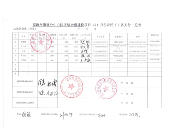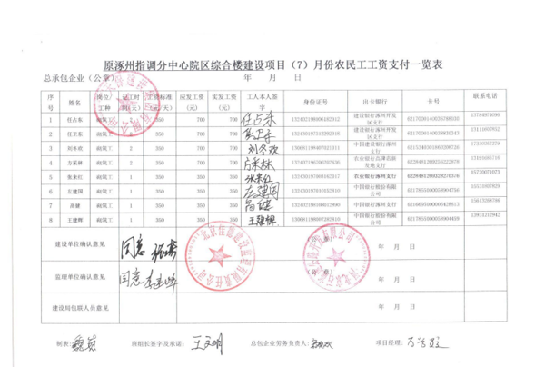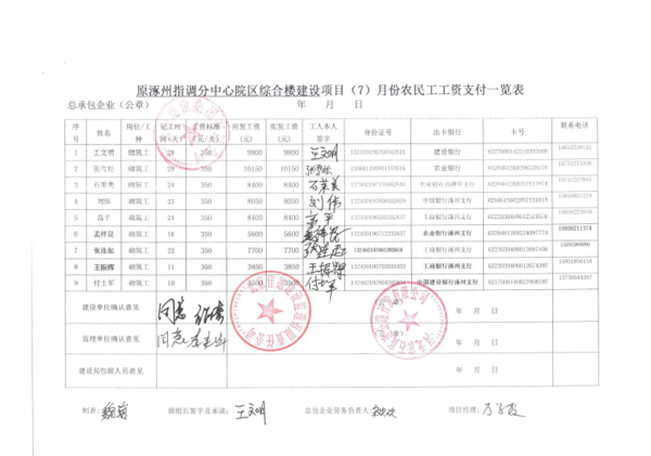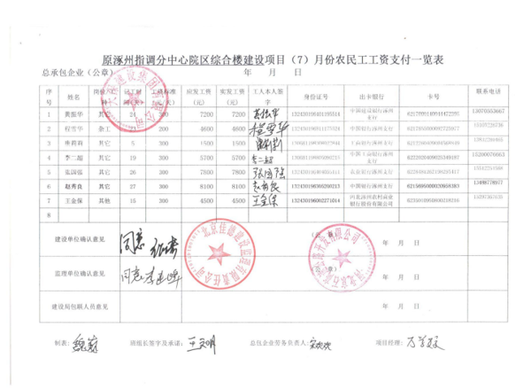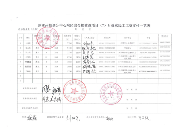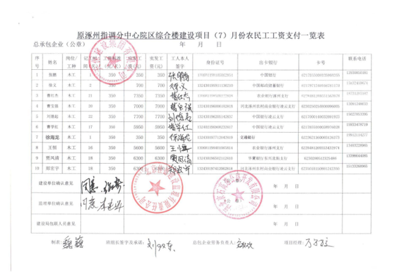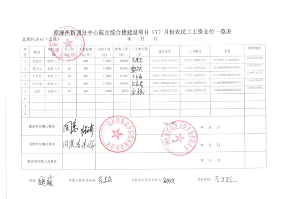 原涿州指調(diào)分中心綜合樓建設(shè)項目7月份農(nóng)民工工資發(fā)放公示