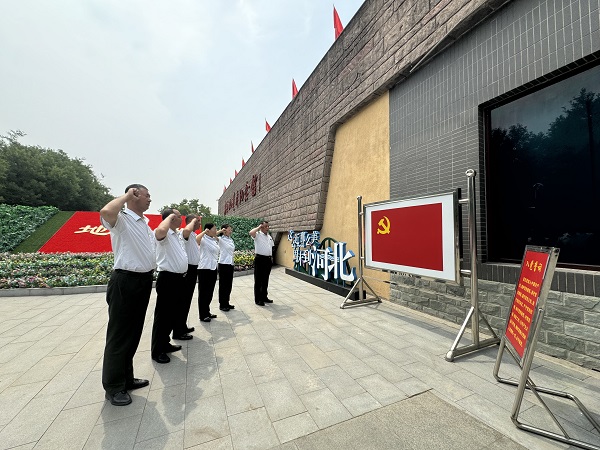 抵達(dá)冉莊地道戰(zhàn)紀(jì)念館后,黨員們面對(duì)鮮紅的黨旗,黨員們高舉右拳,重溫入黨誓詞?!拔抑驹讣尤胫袊?guó)共產(chǎn)黨…… 隨時(shí)準(zhǔn)備為黨和人民犧牲一切,永不叛黨?!?鏗鏘有力的誓言在廣場(chǎng)上空回蕩,每一位黨員的心靈都受到了強(qiáng)烈震撼,更加堅(jiān)定了為共產(chǎn)主義事業(yè)奮斗終身的理想信念。