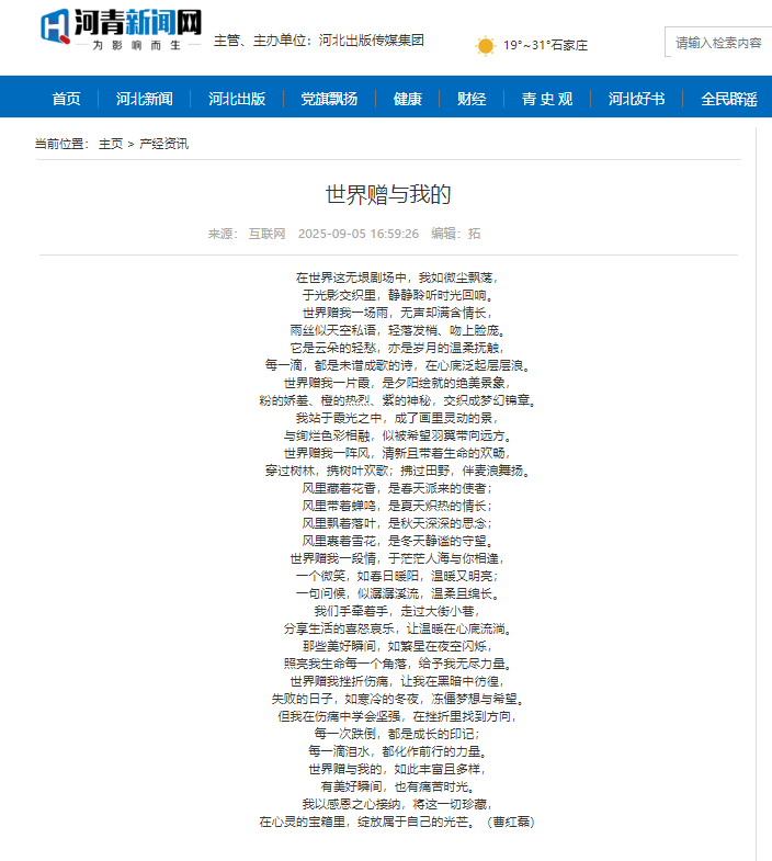 【河青新聞網】世界贈與我的