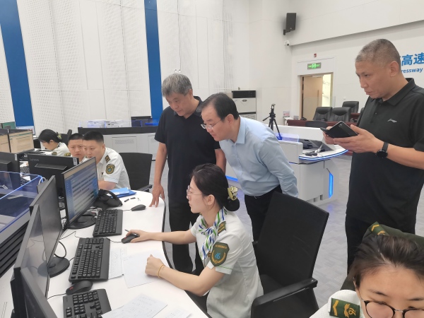 李昕通過外場視頻巡查了全線通行狀況及易緩行路段車流量數(shù)據(jù),詳細詢問了養(yǎng)護工區(qū)、救援公司等單位的點位值守和特情應(yīng)對準備情況,并就一起側(cè)翻事故和一起車輛自燃事故的處置過程進行了現(xiàn)場調(diào)度,實地檢驗了多方協(xié)作應(yīng)急效率。