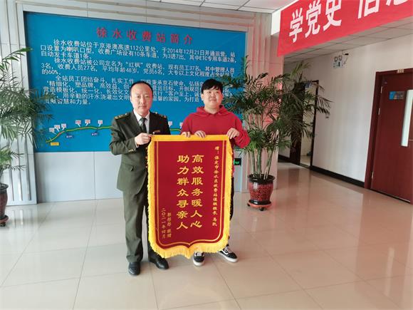 徐水收費站助智障男返家獲錦旗