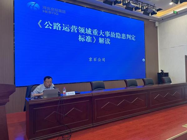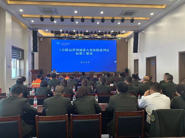 近日交通運輸部下發(fā)了《公路運營領域重大事故隱患判定標準》,京石公司組織養(yǎng)護技術(shù)人員進行自學;10月20日上午,工程養(yǎng)護部在公司教培中心組織召開了《公路運營領域重大事故隱患判定標準》學習宣貫活動,在自學的基礎上,工程養(yǎng)護部經(jīng)理趙治國帶領大家對“判定標準”逐條進行了宣貫和解讀。