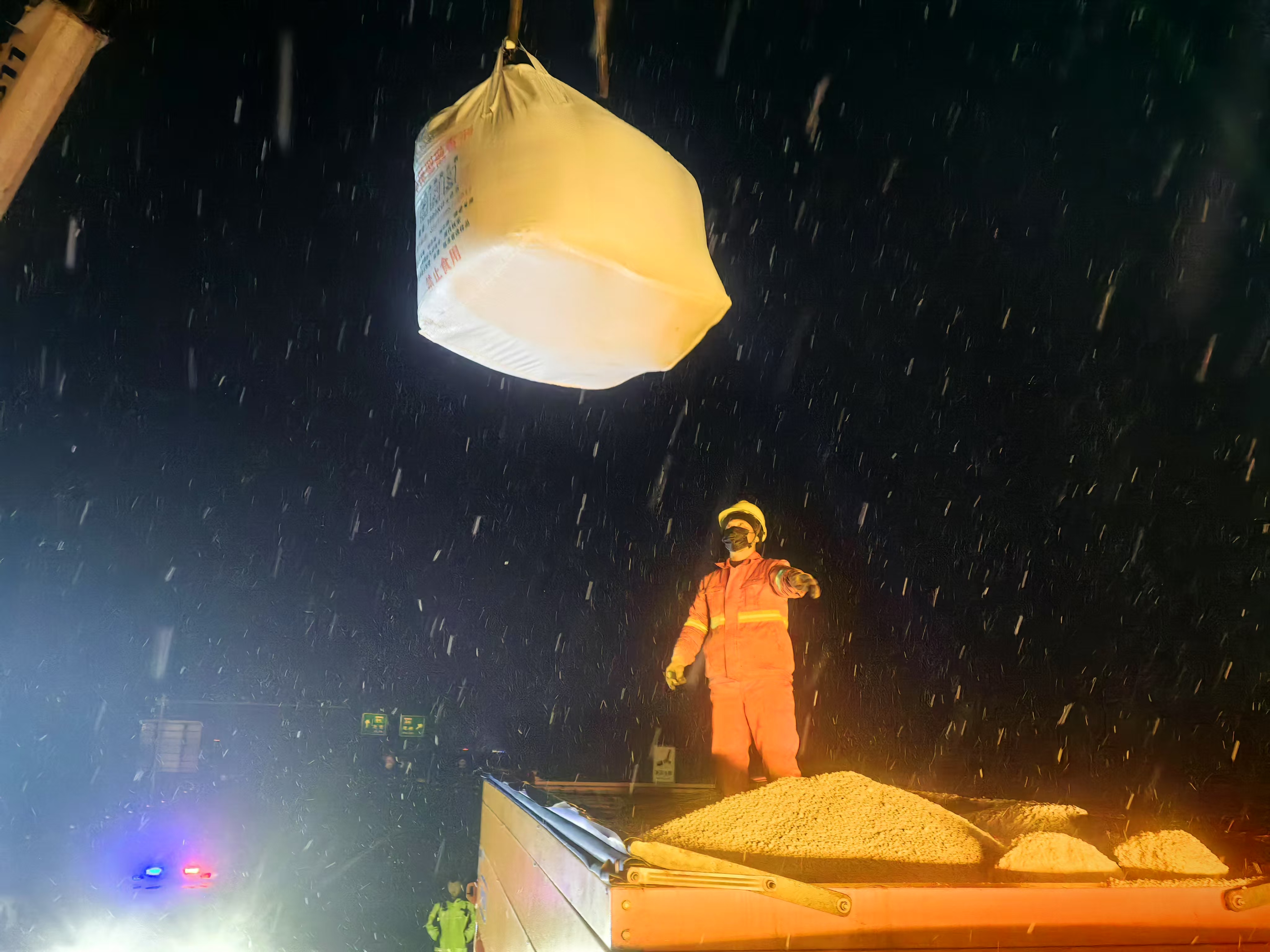 25日8時(shí)25分,藁城工區(qū)依據(jù)《京石公司惡劣天氣保暢方案實(shí)施細(xì)則》立即啟動(dòng)雪天三級(jí)預(yù)警,車輛人員迅速到位,根據(jù)氣溫條件對(duì)可能積雪結(jié)冰的路段預(yù)先撒布一定量融雪劑,在橋面、高填方、匝道、互通立交等路面溫度較低路段適當(dāng)加大融雪劑撒布量。