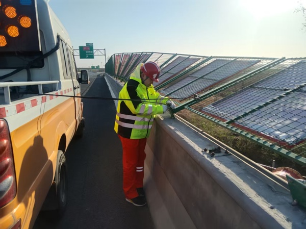 在實(shí)際“迎風(fēng)戰(zhàn)”中,藁城工區(qū)展現(xiàn)出了高度的責(zé)任感和專業(yè)素養(yǎng)。12日清晨,利用“封路”時(shí)機(jī)進(jìn)行了“風(fēng)后”應(yīng)急檢查。應(yīng)急三隊(duì)巡查至K210北京方向時(shí),發(fā)現(xiàn)20米左右的橋梁防拋網(wǎng)發(fā)生傾斜,隨時(shí)有墜落風(fēng)險(xiǎn)。巡查人員張陽、尤雁明迅速行動,他們一方面在倒伏路段設(shè)置警示標(biāo)志,封閉應(yīng)急車道,引導(dǎo)車輛減速繞行;另一方面,利用隨車攜帶的繩索等工具迅速將倒伏的防拋網(wǎng)與車輛進(jìn)行了緊急連接固定,防止發(fā)生二次事故;同時(shí)迅速通知承包商快速抵達(dá)現(xiàn)場進(jìn)行了清除加固,從發(fā)現(xiàn)險(xiǎn)情到處理完畢,僅用時(shí)40分鐘。