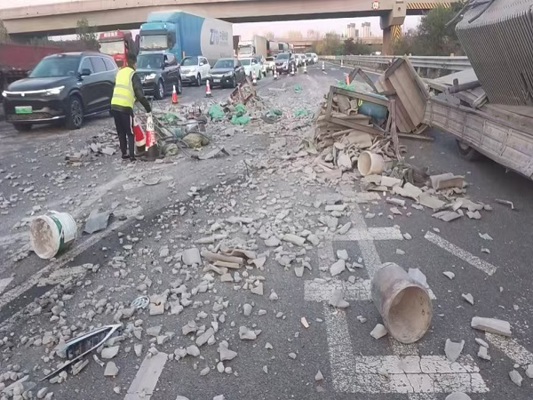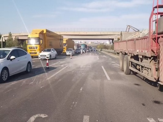 5月1日凌晨5點,第二養(yǎng)護工區(qū)接智調中心通知,北京方向146路段發(fā)生貨車側翻事故,貨物散落導致三車道堵塞,正值“五一”假期首日,交通疏導壓力驟增。