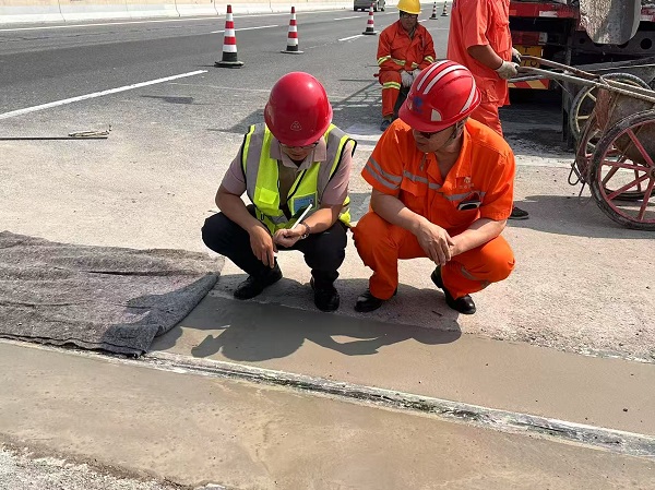質(zhì)量監(jiān)督全流程。以“工序驗收零缺陷”為目標,建立“班組自檢+質(zhì)檢專檢+監(jiān)理終檢”三檢制,嚴抓伸縮裝置材料檢驗、施工工藝規(guī)范;全量驗收伸縮縫寬度、平整度等參數(shù),合格率達100%,實現(xiàn)質(zhì)量管控無死角。