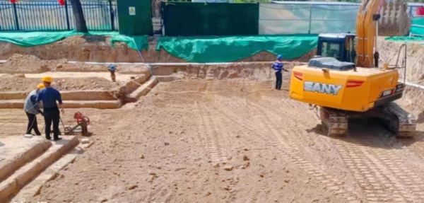 4月17日,原涿州指調(diào)分中心綜合樓項目舉行開工儀式后,迅疾進入工程建設(shè)實施階段。施工單位組織人力和機械設(shè)備等進行基槽開挖、基槽清理和基槽釬探。