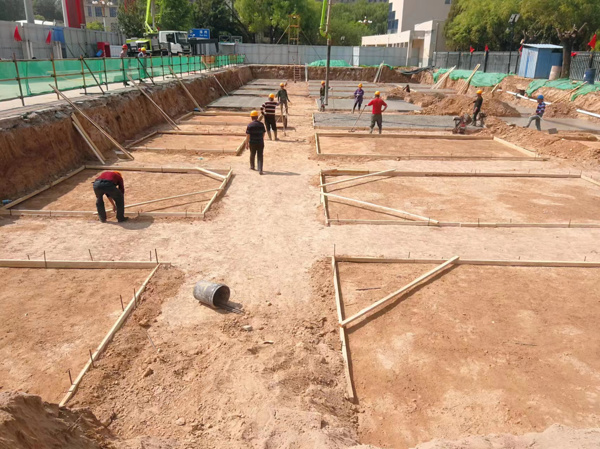施工單位隨即進行下一步施工,支模、放線、驗線,目前,利用天氣晴好的黃金施工窗口,正抓緊澆筑墊層混凝土。
