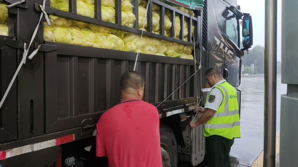 2025年9月15日8時(shí)34分,河北涿州北站收費(fèi)現(xiàn)場上演暖心一幕:一輛滿載蔬菜的“綠通”貨車完成驗(yàn)貨后,突遭秋雨傾盆,站內(nèi)工作人員見狀主動(dòng)上前,與司機(jī)合力遮蓋貨物,成功守護(hù)一車農(nóng)產(chǎn)品安全,以實(shí)際行動(dòng)踐行“以人為本、服務(wù)至上”的高速服務(wù)理念。