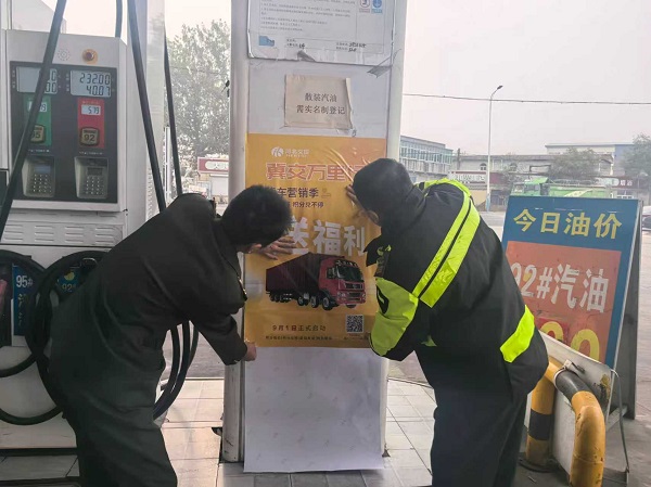 隨后,引流小組在海油加油站現(xiàn)場設(shè)立宣傳點,向過往加油的貨車司機們積極宣傳“冀交萬里行”貨車營銷活動。工作人員通過發(fā)放宣傳彩頁、現(xiàn)場講解、手把手指導(dǎo)注冊等方式,耐心向司機師傅們介紹小程序的注冊流程及使用方法,讓大家直觀感受到各項福利政策。同時,引流小組還重點推廣了“空車配載”服務(wù),詳細(xì)解釋了該服務(wù)如何幫助司機快速匹配貨源、減少空駛里程、增加運輸收入,實現(xiàn)“貨找車、車找貨”的高效匹配,真正做到“一站直達(dá)”的高效物流體驗。