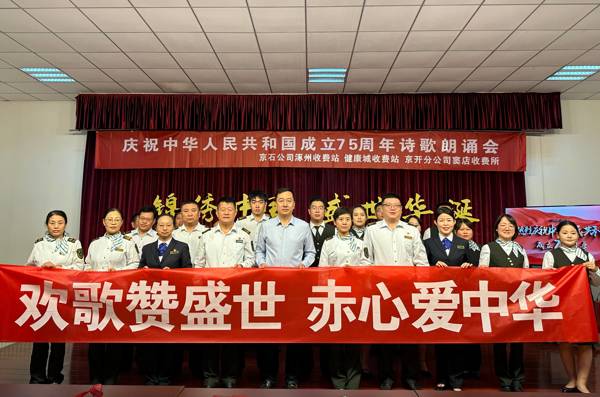 錦繡中國,盛世華誕,七十五載,征程如虹。為隆重慶祝中華人民共和國成立七十五周年,延續(xù)京冀兩地高速收費站共建深情,共同抒發(fā)熱烈的愛國情懷,9月30日上午,健康城收費站、涿州收費站黨支部聯(lián)合兩站分會與京開分公司竇店收費所,在健康城站共同開展了慶祝中華人民共和國成立75周年詩歌朗誦會活動。奮斗在祖國交通事業(yè)一線的工作者們,滿懷豪情,把對祖國的無盡熱愛熔鑄于一首首激情澎湃的詩篇之中,以詩的激昂韻律,歌頌祖國的壯麗騰飛。