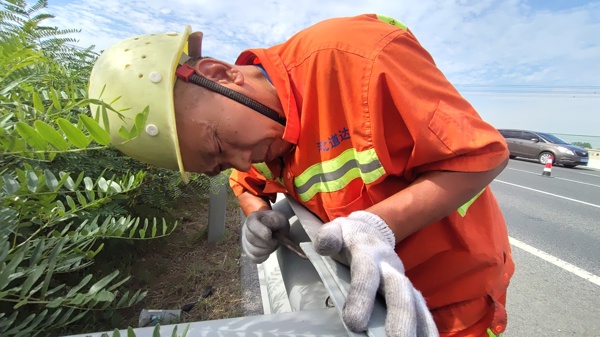 為了完成勞動競賽各項目的技術(shù)狀況提升工作,定州工區(qū)采用邊調(diào)查邊施工的方案,加快技術(shù)狀況提升工作的進度。四個項目中工程量最大的是護欄設(shè)施技術(shù)狀況提升工作,需要對雙幅將近140公里的鋼護欄的螺栓、防阻塊、墊片等各種配件完好程度進行檢查,不放過每一條螺栓、每一個墊片。工區(qū)集中優(yōu)勢兵力先啃這塊硬骨頭,利用秋季多晴好天氣的有利條件,將施工人員分成幾組,延長施工時間分段進行施工,將缺少的護欄配件逐個補齊,將每一個螺栓挨個擰緊。對防眩設(shè)施的提升工作則是利用中央帶綠化修剪的施工現(xiàn)場合并施工,將中央帶綠化間零星分布的銹蝕的金屬防眩網(wǎng)進行更換。
