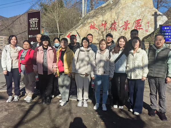 秋日的陽光灑在身上,每位員工的臉上都洋溢著興奮與期待。坡峰嶺那漫山遍野的紅葉像是大自然打翻的調(diào)色盤,遠(yuǎn)遠(yuǎn)望去,紅的似火,黃的如金,層林盡染,美不勝收。