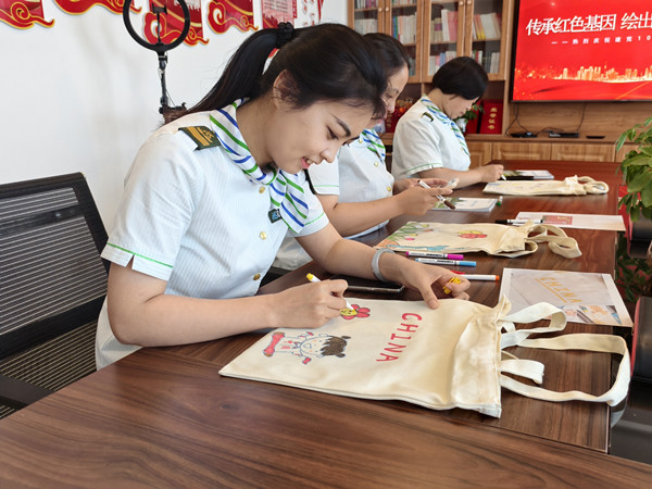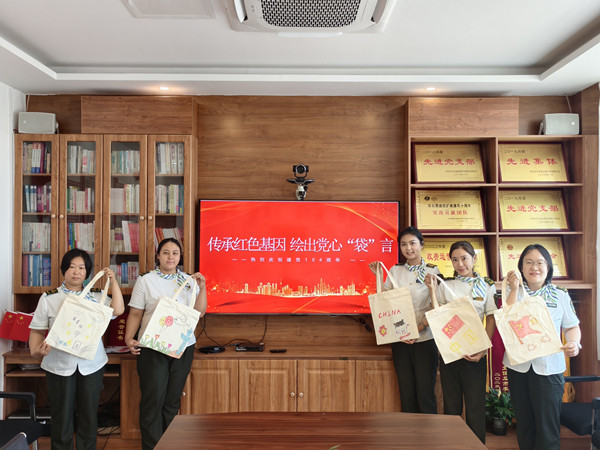 活動中,員工們互幫互助、共同進步。繪畫技藝嫻熟的員工主動分享繪畫技巧,耐心地指導(dǎo)不太熟練的同事,幫助他們完善作品。在這種相互學(xué)習(xí)、相互借鑒的良好氛圍中,原本樸素?zé)o華的帆布包逐漸變得色彩斑斕、獨具特色。每一個帆布包都像是一個小小的紅色載體,承載著員工們對黨的深厚情感和美好祝愿。