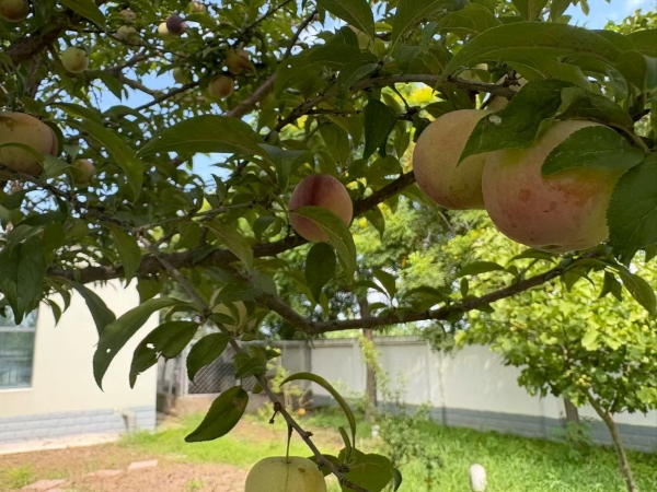 走進(jìn)果蔬園,幾棵李子樹枝繁葉茂,紫紅、翠綠的果子掛滿枝頭,飽滿得壓彎了枝條,微風(fēng)拂過,果香陣陣。站里的員工們趁著休息時(shí)間,小心翼翼地采摘成熟的李子,酸甜的滋味引得大家忍不住先嘗上幾顆。旁邊的菜園里更是生機(jī)盎然,長長的菜豆角像綠色的簾子掛滿竹架,飽滿挺直,隨手摘下一把,便能感受到那份帶著泥土氣息的新鮮。