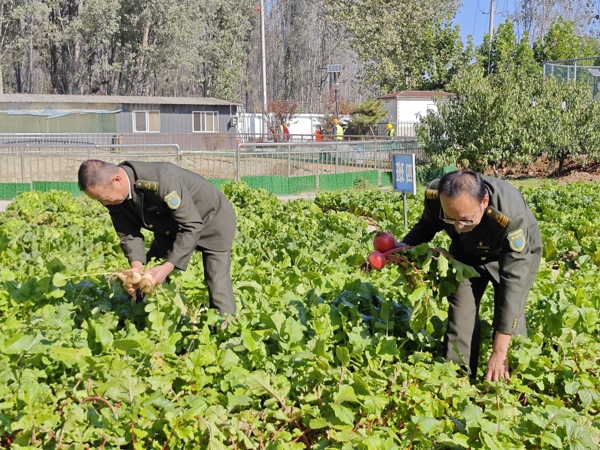 這片菜園從春日開始,便承載著一群人的期盼。翻土、育苗、澆水、搭架,員工們利用工余時(shí)間,悉心經(jīng)營(yíng)。如今,園里已是一番豐饒景象,大白菜舒展著寬大的翠葉,敦實(shí)的南瓜在藤葉間若隱若現(xiàn),紅蘿卜與白蘿卜也從松軟的泥土中探出飽滿的身形,靜待采收。