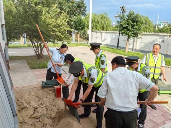 清理排水通道小組人員迅速攜帶工具趕到積水嚴(yán)重區(qū)域,全力清除排水口的雜物和淤泥,確保排水順暢。裝填沙袋小組爭(zhēng)分奪秒地將沙袋裝滿,動(dòng)作嫻熟而高效。堆放沙袋小組則緊密配合,將裝好的沙袋快速搬運(yùn)至配電室和發(fā)電機(jī)房門(mén)口,筑起一道道堅(jiān)固的“防線”,阻止積水進(jìn)一步蔓延。