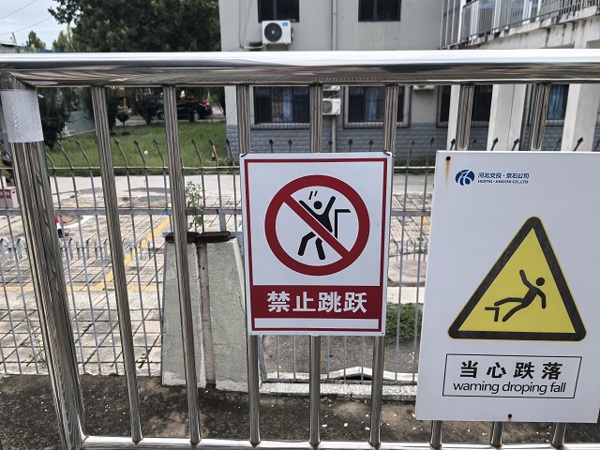 現(xiàn)場(chǎng)可見(jiàn)“限4人”標(biāo)識(shí)明確了樓梯同時(shí)承載的人員數(shù)量上限,防止因人員過(guò)度聚集引發(fā)樓梯荷載超標(biāo)問(wèn)題;“禁止跳躍”標(biāo)識(shí)以醒目的圖案和文字,警示通行人員切勿在樓梯上做出跳躍等危險(xiǎn)動(dòng)作;“當(dāng)心跌落”標(biāo)識(shí)則時(shí)刻提醒大家注意腳下,防范跌落風(fēng)險(xiǎn)。