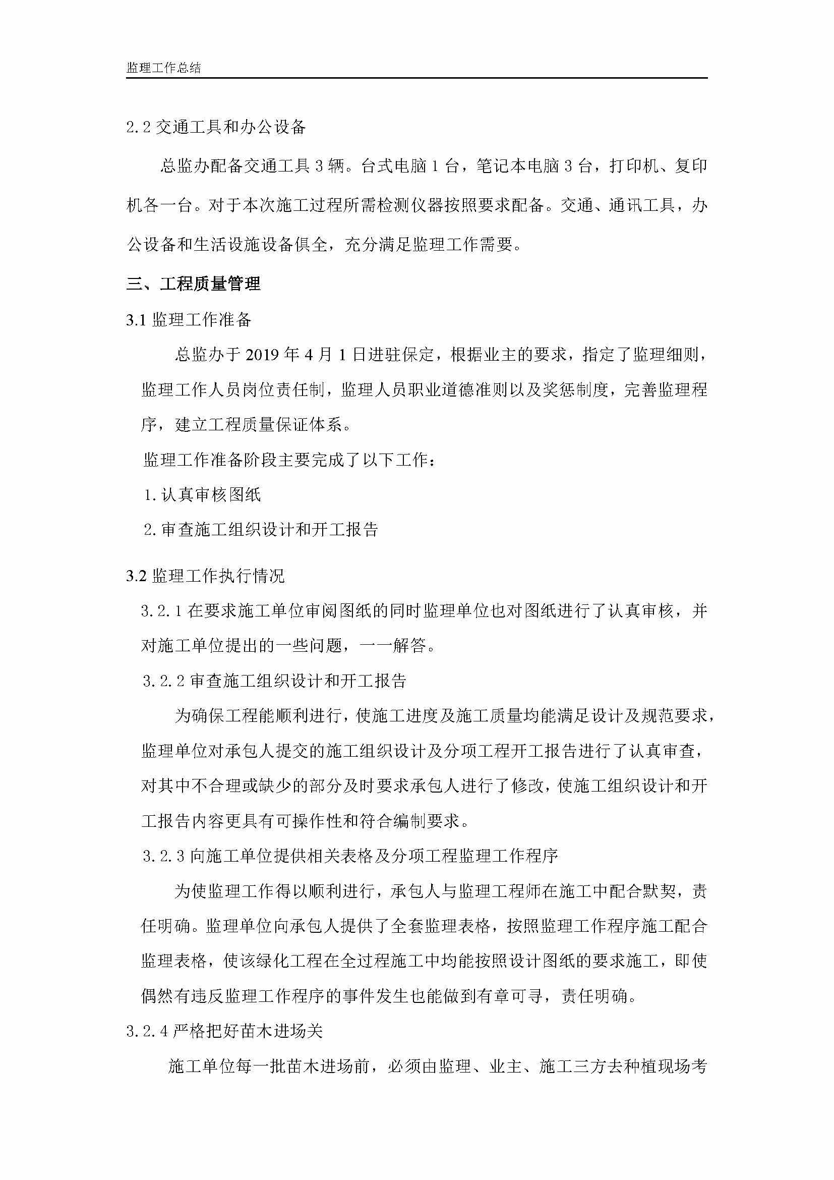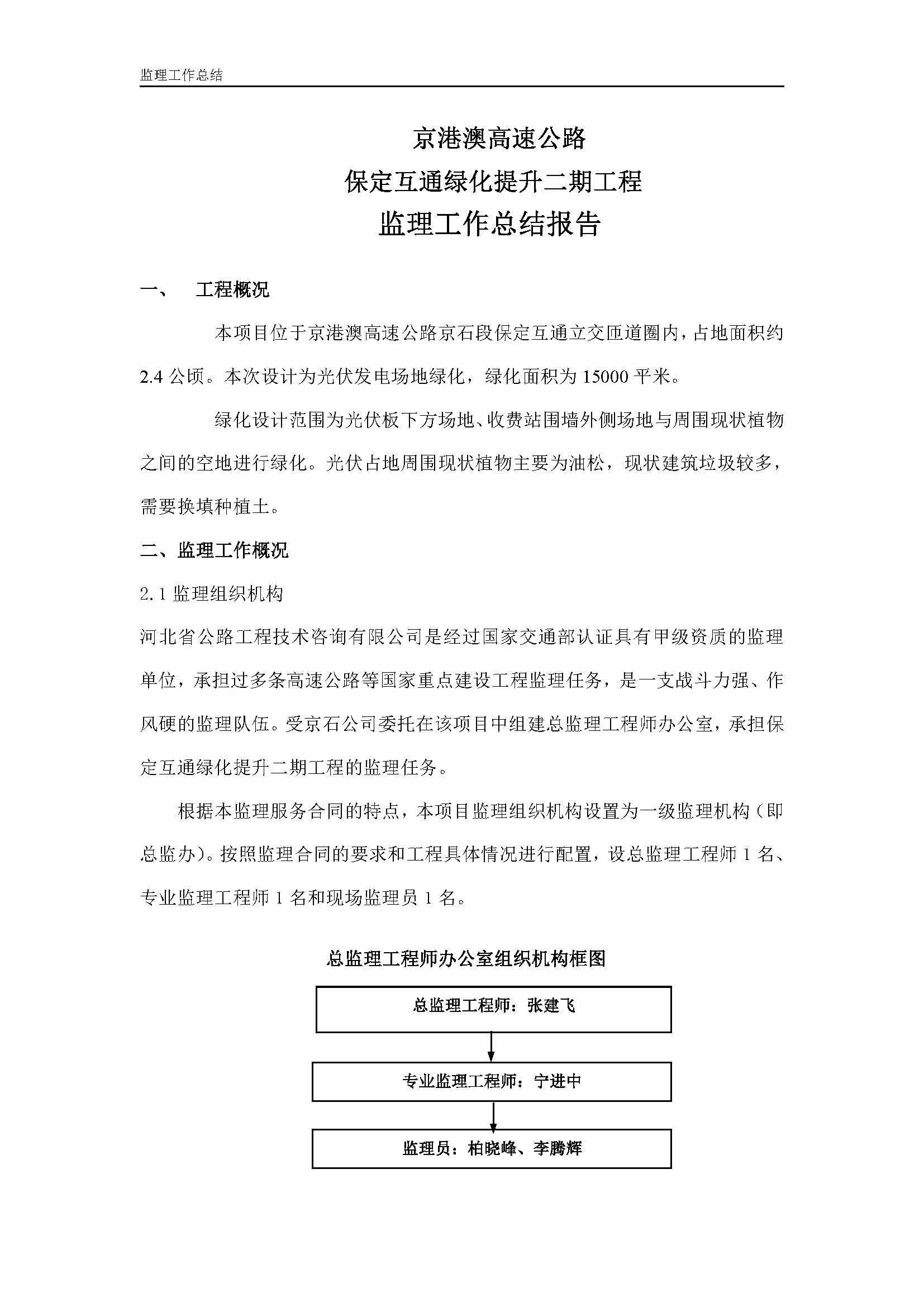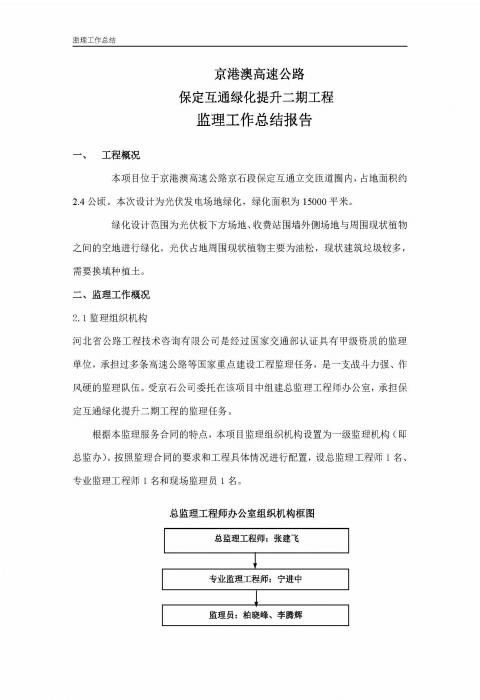 保定互通綠化提升二期工程監(jiān)理報(bào)告