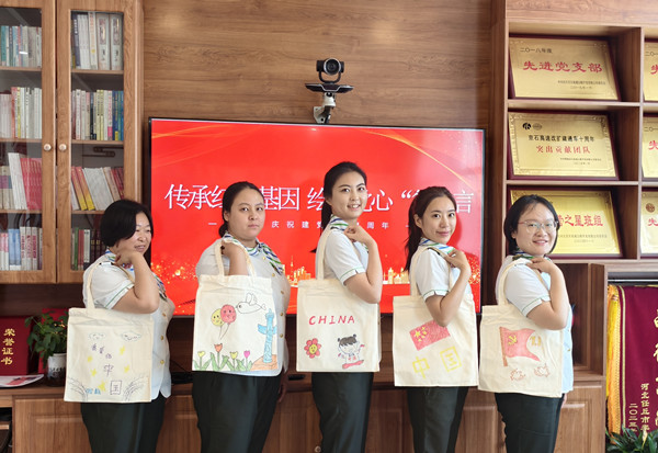 活動中,員工們互幫互助、共同進步。繪畫技藝嫻熟的員工主動分享繪畫技巧,耐心地指導(dǎo)不太熟練的同事,幫助他們完善作品。在這種相互學(xué)習(xí)、相互借鑒的良好氛圍中,原本樸素?zé)o華的帆布包逐漸變得色彩斑斕、獨具特色。每一個帆布包都像是一個小小的紅色載體,承載著員工們對黨的深厚情感和美好祝愿。